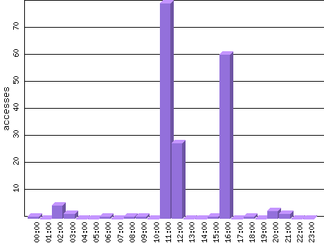 | Hour | Accesses | % | Bytes | % | Visits | % | Bits per Sec | Bytes per Sec |
