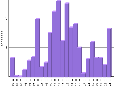 | Hour | Accesses | % | Bytes | % | Visits | % | Bits per Sec | Bytes per Sec |